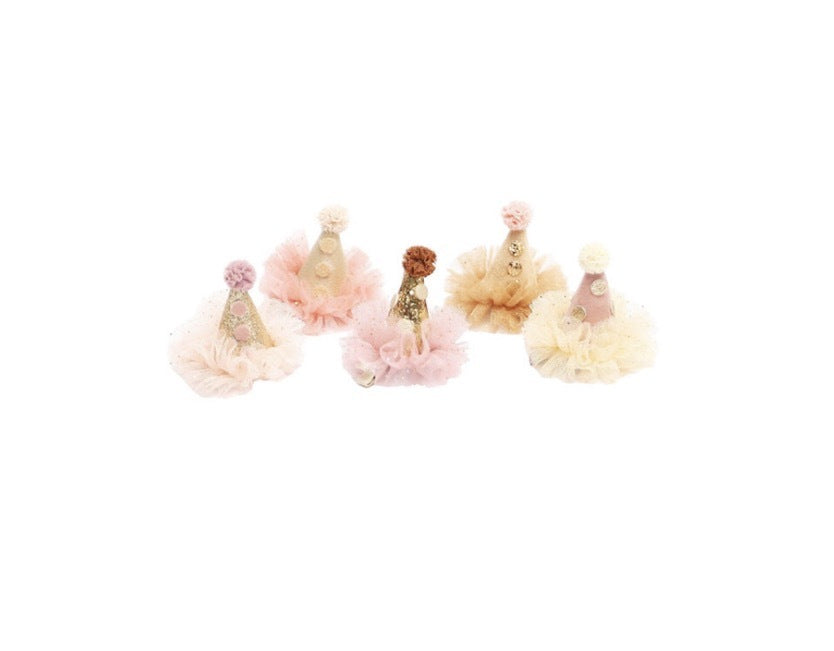 Unit price perA nice addition to our fairy wings and the perfect give-away on birthdays is this party hat clip set. The 5-clips are color matched to one-handed and sparkle in the most beautiful colors.