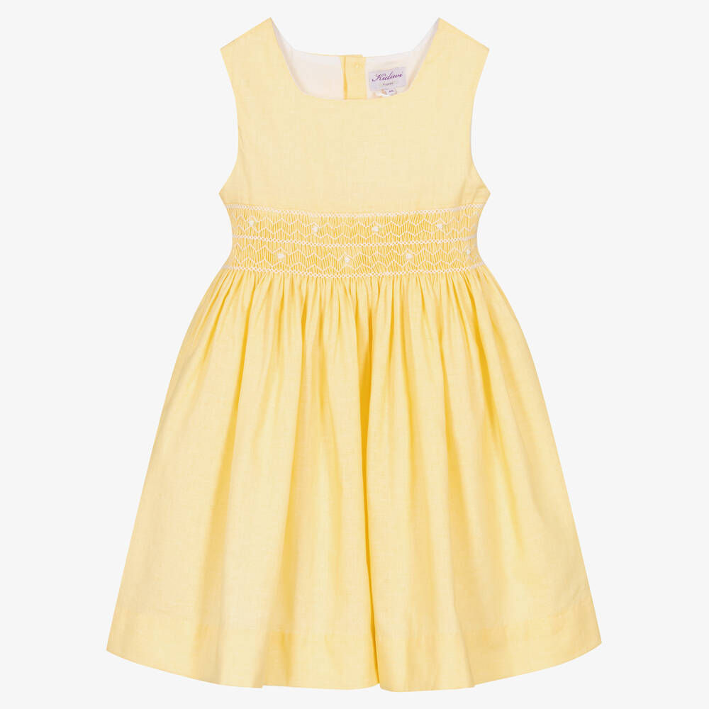 - Design: Bright yellow fabric with a hand-smocked bodice for a detailed, elegant look