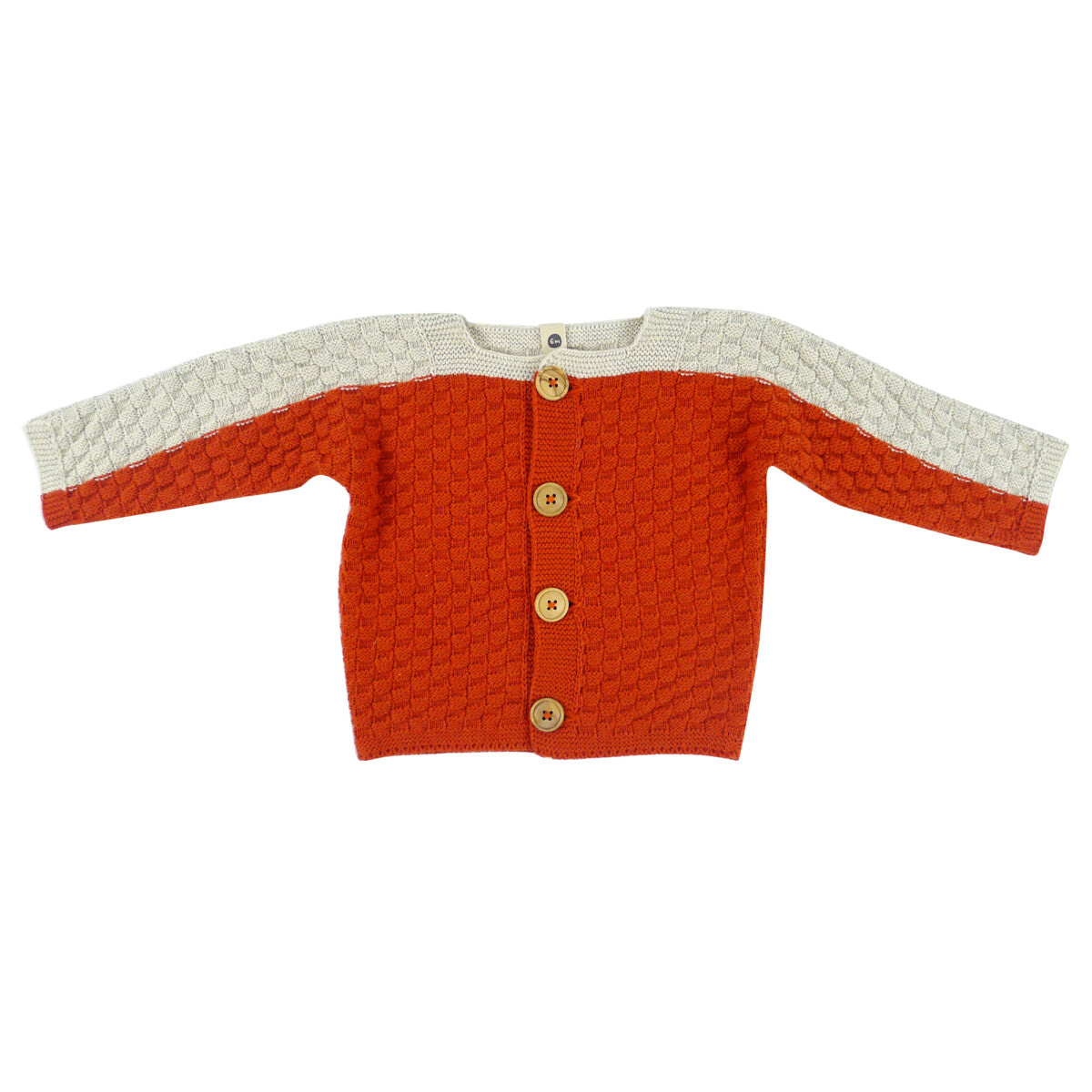 Soft and comfortable baby cardigan with wooden buttons and knitted-in pattern in organic cotton. The cardigan is available in two sizes (12 and 18 months). Combine it with clothes you already have in your closet or with the matching baby jumpsuit or dungarees from the same collection.