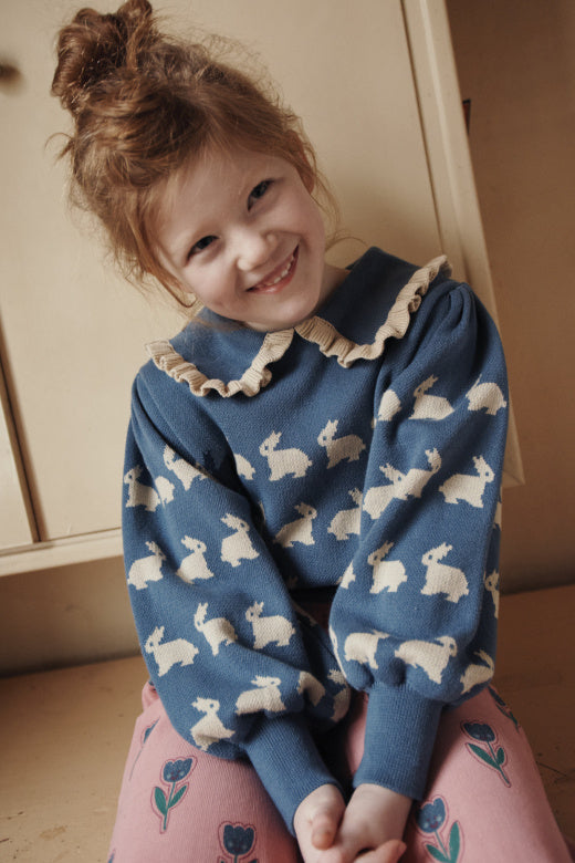 Emile et Ida Blue Rabbit Jacquard Sweater