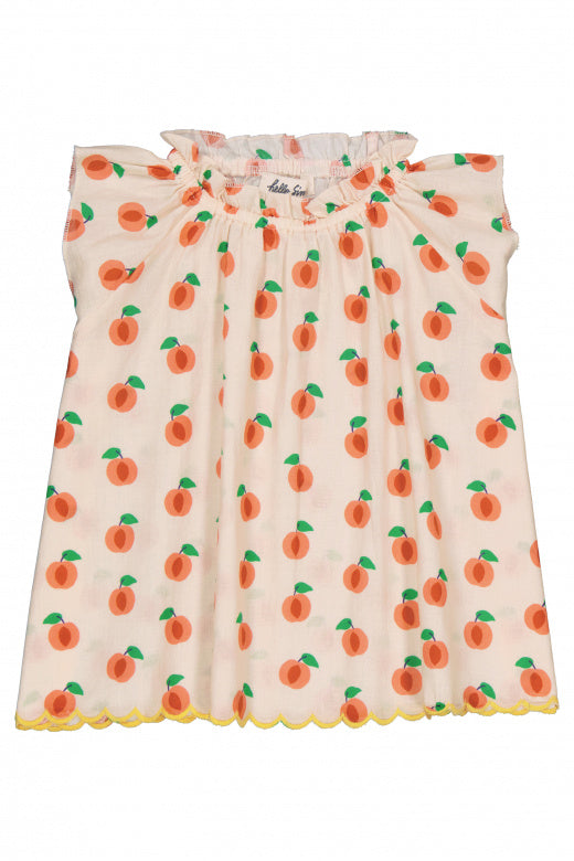 Precio unitario porBaby dress in all over printed cotton in our pretty Peach unique print.
