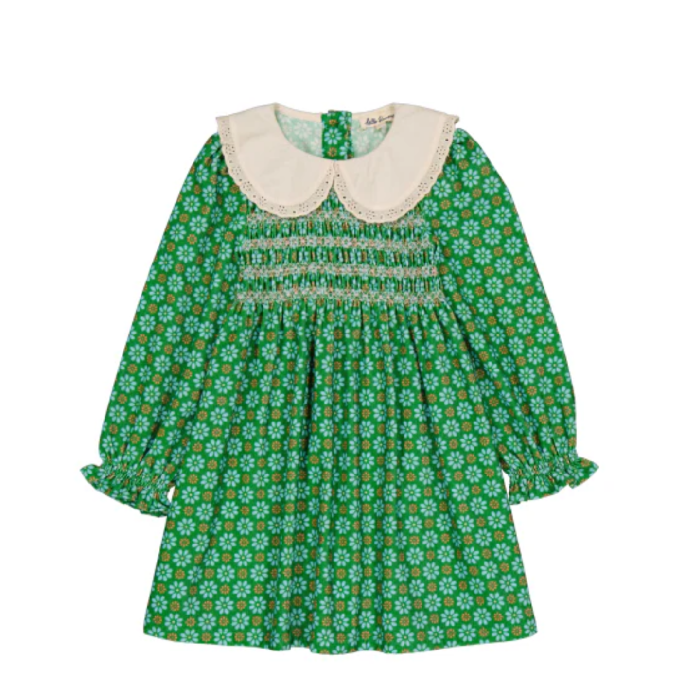 Our lovely Malice dress in printed corduroy is perfect all day long. With its fancy smocking, gathers sleeves and large lace-trimmed collar, it will quickly become your favourite dress.