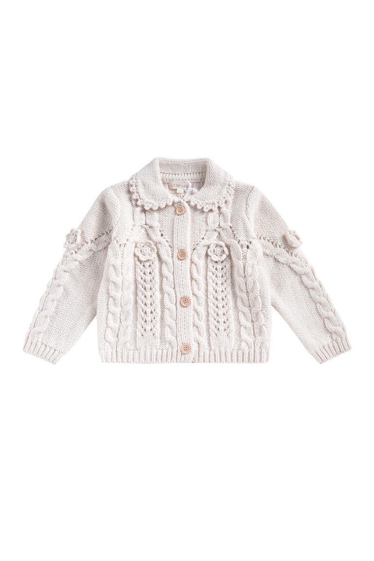 A delicate cardigan with hand-crocheted flowers!Timeless colors and very original details: that's the bohemian spirit! With its thick knit, Louny can even be used as a light mid-season jacket.