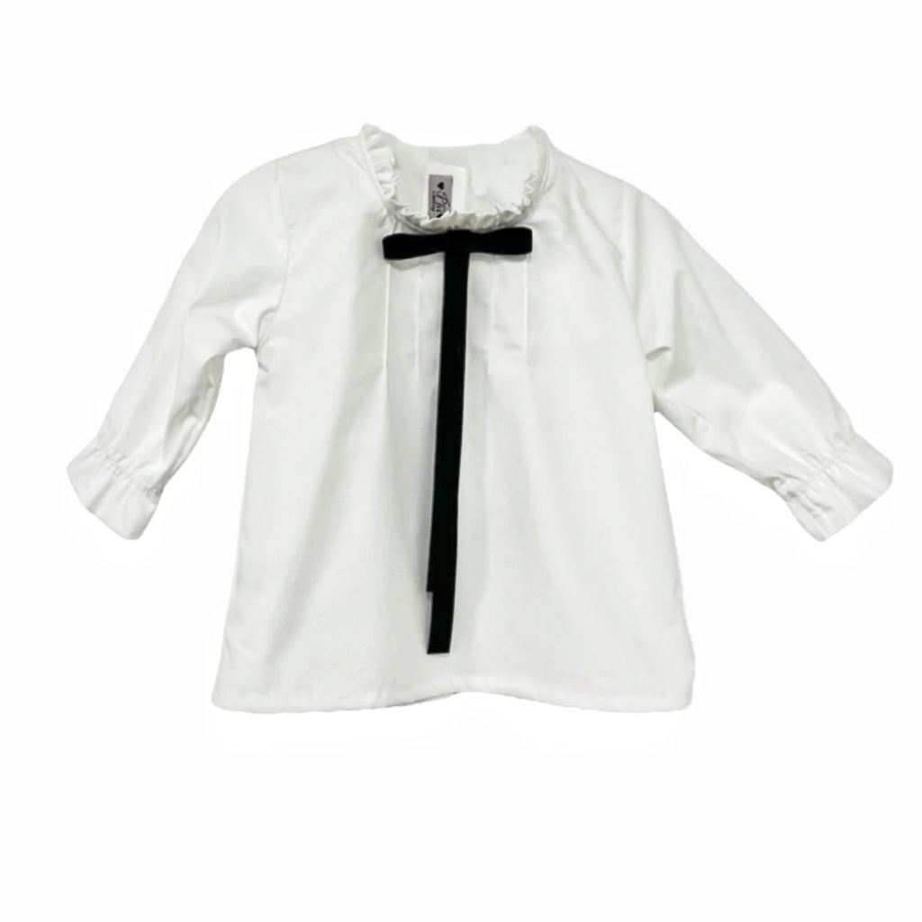 Add a touch of timeless elegance to your little one’s wardrobe with this beautiful white blouse from Phiclothing, made in Portugal. Featuring a delicate ruffled neckline and a striking black velvet bow, this blouse exudes sophistication, making it perfect for both special occasions and stylish everyday wear. Crafted from soft, breathable cotton, it offers comfort while keeping your baby girl looking chic. Whether paired with skirts, trousers, or leggings, this blouse is a versatile and elegant addition to any baby girl’s closet.