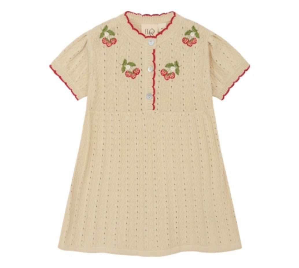 FLOESS Girls' Knit Dress with Cherry Embroidery