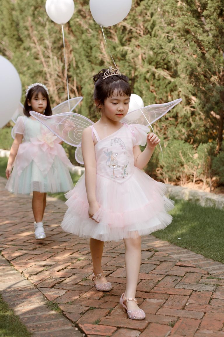 Its delicate V-neckline showcases your child’s collarbone, while the short sleeves ensure comfort and freedom of movement during events. The true highlight of the dress is the exquisite hand-embroidered magnolia flower motif on the bodice—symbolizing luxury, beauty, and sophistication.